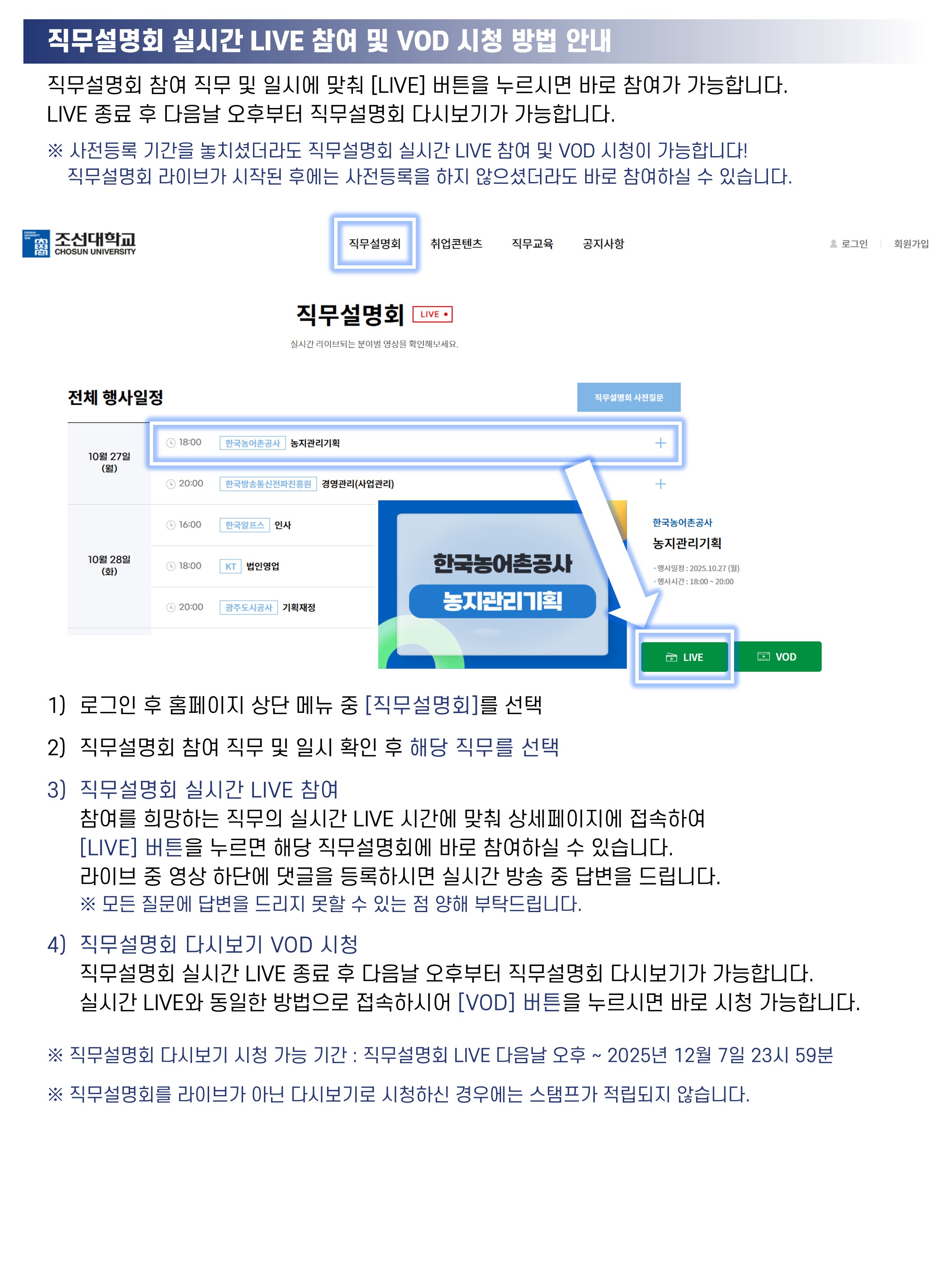 [이용안내] 직무설명회 LIVE 참여 및 다시보기 VOD